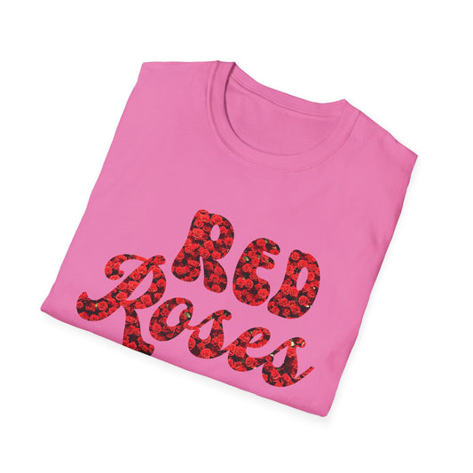 T-Shirt with Red Roses carving - Unique Floral Design Tee for Casual Wear