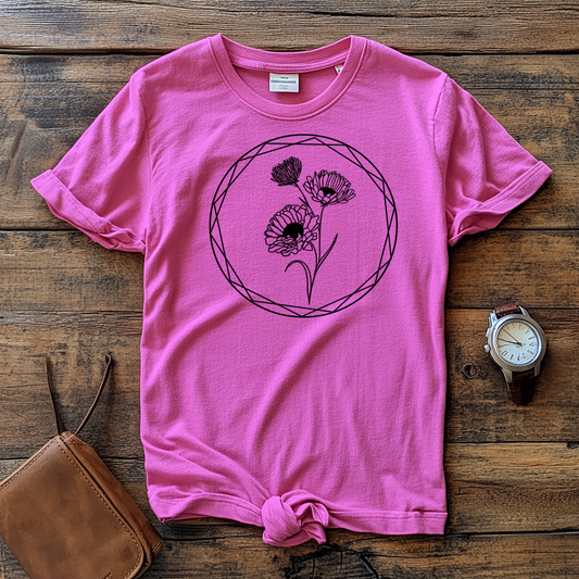 Wildflower Circle T-Shirt - Botanical Floral Geometric Tee - Nature Lover Gift - Minimalist Shirt - Pink Blue Grey